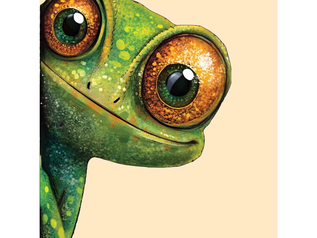 Úgy tűnik, mintha a kis béka kíváncsian bekukucskálna az ajtó mögül – a gyerekek garantáltan imádni fogják!